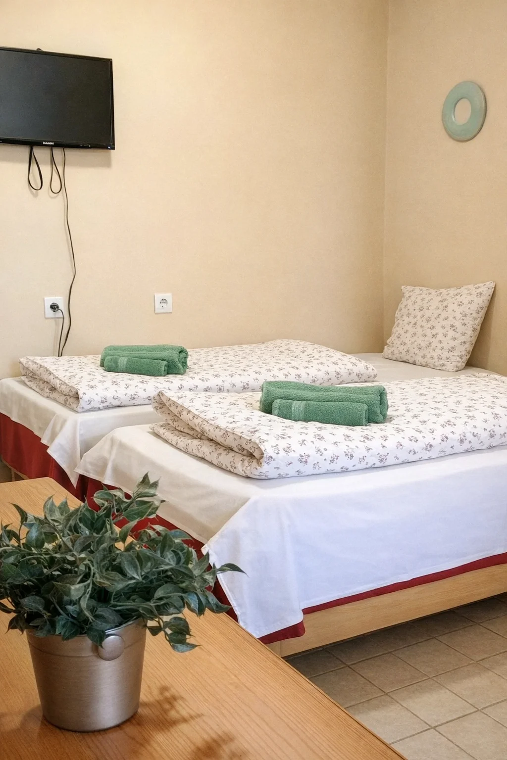 Here you can choose and book your place with us! At Pipacs Guesthouse—apart from campers—we can accommodate a total of 35 people in rooms.